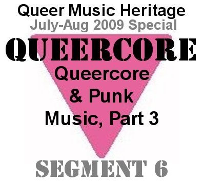 Tribe 8 - Manipulate (1992) That should give you a flavor of this show. Welcome to a very expanded edition of Queer Music Heritage. My show this month includes a comprehensive interview with Jon Ginoli of Pansy Division and this special series of five segments celebrating punk and queercore music. I asked Jon this question in Part 1 of the show but it bears repeating, and expanding on. It's where he describes what the term queercore means to him. What does the term queercore mean to you? JG: It was first homocore. When I got to San Francisco in '89 there was a zine called "Homocore," but in 1990 that was the year, I think in retrospect, the year of the queer, where suddenly the word queer got reclaimed. I think it was by ACT-Up people, or activists in general, who were saying, you know, you want to call me queer? Yeah, I am queer, so I'm going to defuse that term for you. You call me queer I'm going to accept that. And that was when you started hearing the term Queercore. The funny think about Homocore, the magazine and the movement, is that they were starting to write about queer rock bands when there really weren't any. There was a cassette tape that JD's put out, Juvenile Delinquents Magazine, Bruce LaBruce and GB Jones, but a lot of the bands were on this tape, which I think was '89, I can't exactly remember what year, but it was definitely before Pansy Division, seemed like just a lot of adhoc groups, like bands that just got together to record a song, or something, but not a band that you could really go see, bands that for the most part didn't make records later. So it's kind of like the idea of homocore, or Queercore, or a gay rock band, people imagined it before it really existed. JG: But what is it? It's edgy, noisy, blunt, and very in your face, rock and roll, punk rock. A lot of it's funny, a lot of it is confrontational. There were a lot of people who just , said they were fed up and weren't going to take it anymore, and they made this music that was sharp-edged. So, was Pansy Division Queercore? JG: