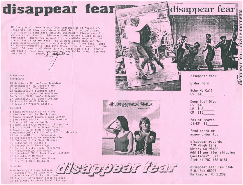 Flyers from circa 1988 and 1999