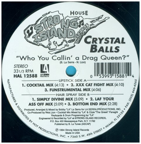 The song by Tinez Benez was from 1994, as was "Who You Calling a Drag Queen?" by Crystal Balls, and from the next year, from France, was Sister Queen, who gave us "Let Me Be Your Drag Queen."