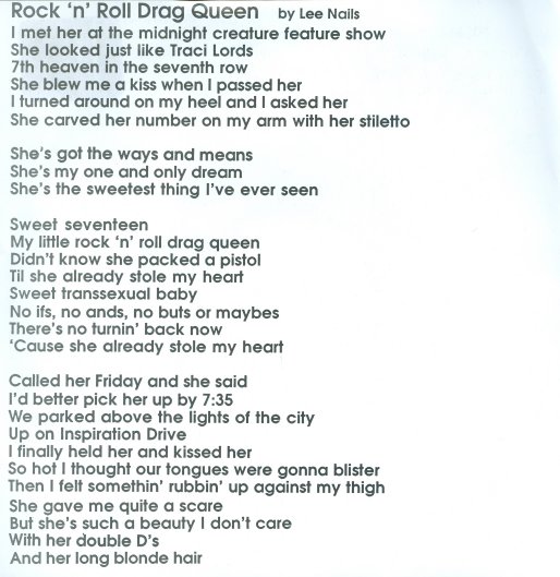 After John-Fredrick was a song called "Drag Queen" by the Go Faster Nuns. That's from their 2004 album "Under Neon Light." And they were followed by a "Rock 'N Roll Drag Queen," by the Hyperdrive Kittens, from 1993. That was released by the famous San Francisco label Outpunk. Let's slow things down with an artist I love, Mary Gauthier. From the 1999 album that really started getting her exposure is the title track "Drag Queens and Limousines." Mary Gauthier - Drag