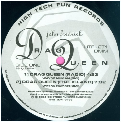 That set started off with a band called Lord of the Pants, and they did "She's a Guy" from their 2001 CD "Wit Happens." Then the next act was called the Sunset Bombers, and their only LP, a self-titled one, included the song "Drag Queen." It's from 1978 and was their only album because the lead singer, Doug Fieger, was also in a band just getting attention called The Knack, which went on to sell millions. Anyway, by the time we got to the last band of that set, well, they knew she was a drag queen. The Earps featured their song "Drag Queen" on a 2007 CD, "Here Come the Earps." So, that set included two songs called "Drag Queen," and here are two more, starting off with a single from 1999 by John-Fredrick. John-Fredrick - Drag