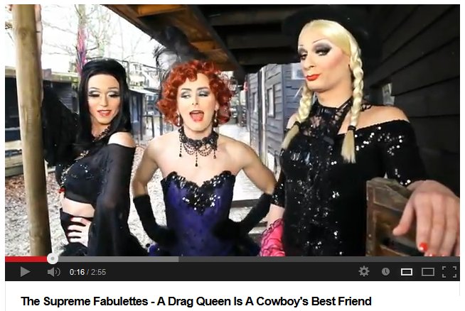 Back in 1984, when Boy George exploded onto the charts, at the Grammy Awards he was named Best New Artist. And I still remember watching that show and seeing him, via satellite, say: "Thanks America, you've got style, you've got taste, and you know a good drag queen when you see one." That was edgy stuff in 1984. Well, of course, Boy George didn't really consider himself a drag queen, but it was all the same to country artists Moe Bandy and Joe Stampley, who made a hit song out of their parody "Where's the Dress." This is JD Doyle and I'm back with Part 3 of "Songs ABOUT Drag Queens." Here's some more country music, and the trio goes by all of their names, Vint Blackburn, Mathilda Nance and Billy King. From their 2011 album "Wanted," is "Daddy Is a Drag Queen."