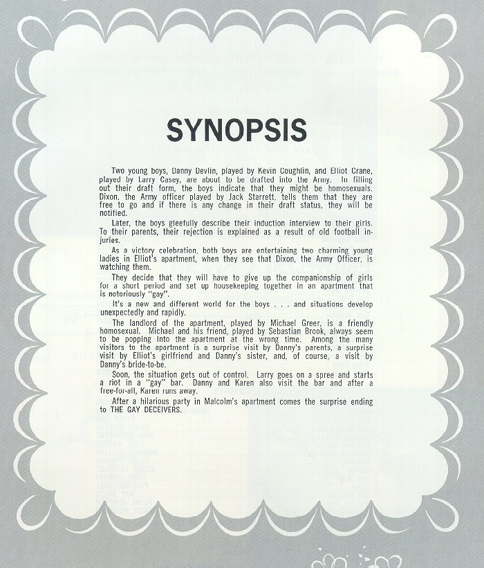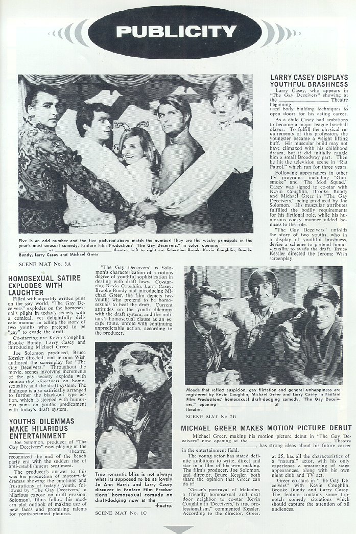 "The Gay Deceivers" Theatre Press Kit Plus, Click for extensive interview Also, Click for some Michael Greer recordings