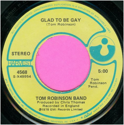 Okay, next we're up to one of the most iconic anthems. It's by the Tom Robinson Band and over the years Robinson has done many updated versions of it. But here's the original from 1978, "Glad to Be Gay." Tom Robinson