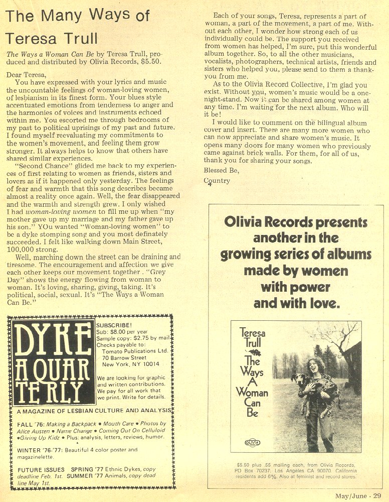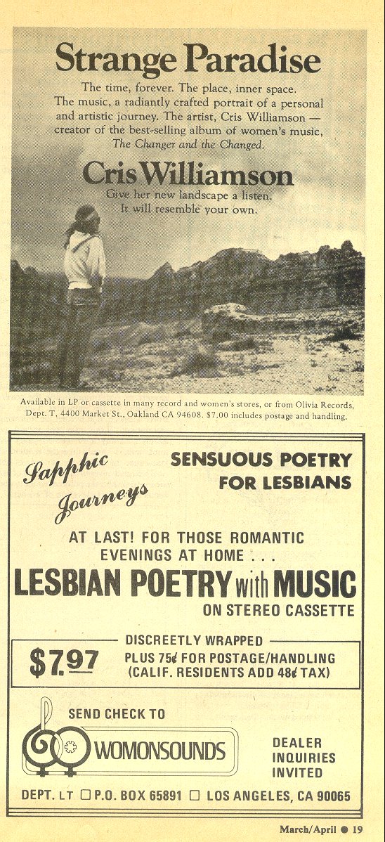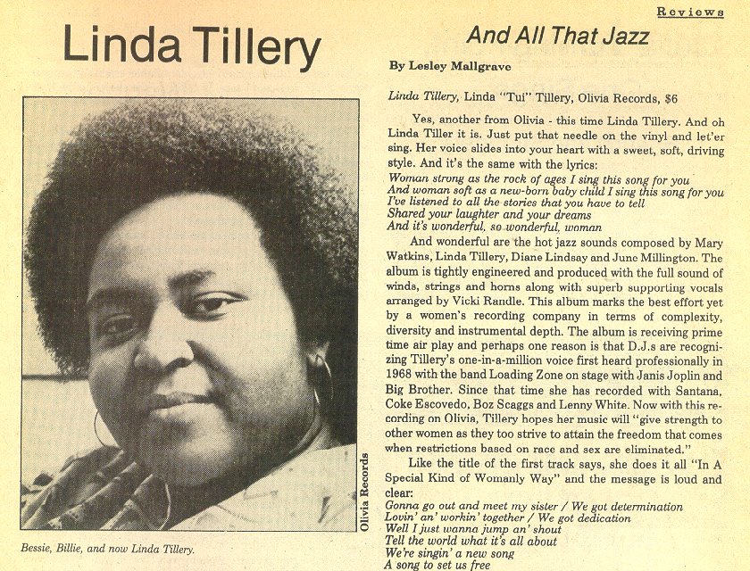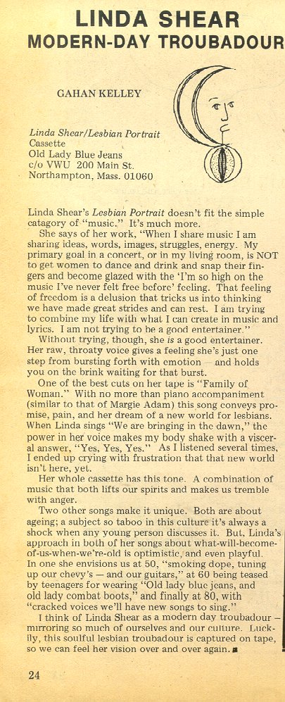 Lesbian Tide Women's Music Articles & Ads Page 4 Linda Shear