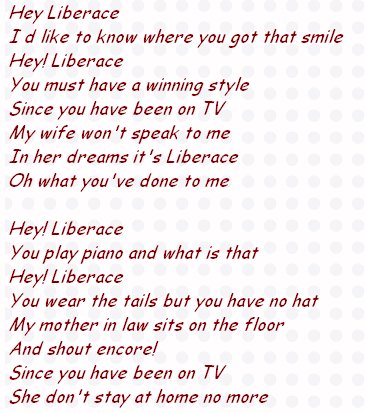 "Dear Liberace," by Ruth Wallis. Now we both adore the music