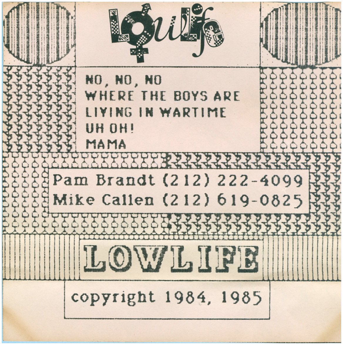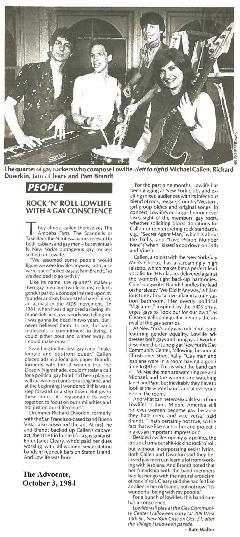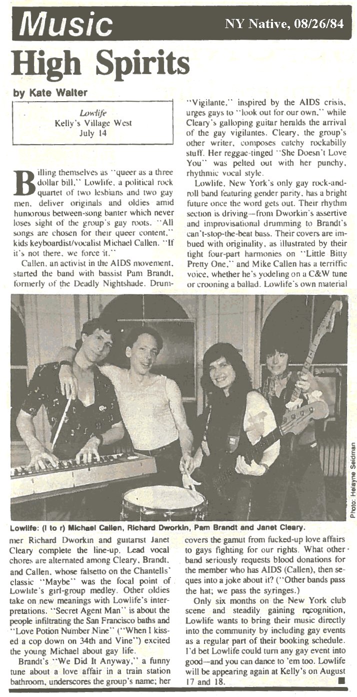 Lowlife Lowlife was Michael Callen, Pam Brandt, Richard Dworkin and Janet Cleary.