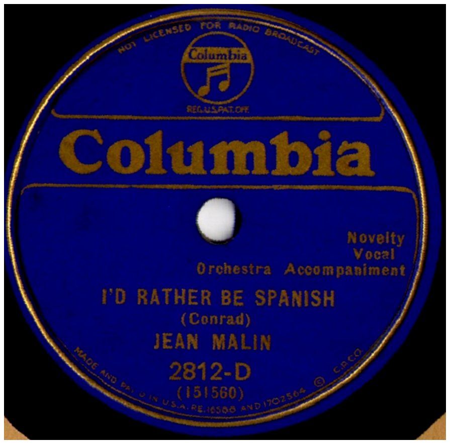 Sam Lanin's Famous Players - The Man I Love (1927) That over-the-top introduction by me was the way I began my June 2004 show, and I've always been fond of it. As I said in it, that version of "The Man I Love" was from 1927, by Sam Lanin's Famous Players, and it gets us in the mood right away for some other quite old music, for example by Jean Malin, one of the main characters of the Pansy Craze. He wasn't really a singer, but he was such a popular emcee and entertainer that in 1933 Columbia Records put out this outrageous 78 rpm release. It had the songs "That's What's the Matter With Me" and "I'd Rather Be Spanish Than Manish." Jean Malin -