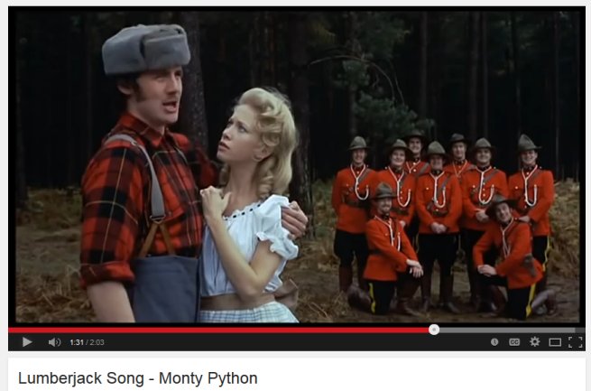 Here are some clips from 70s UK television. First, John Inman does the title track from the show that made his career, "Are You Being Served." And then from Monty Python we hear "Camp It Up" and the "Lumberjack Song." John Inman -