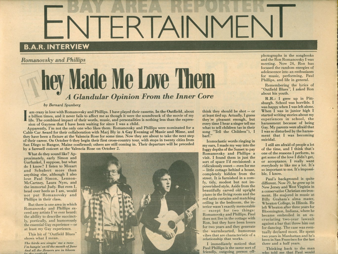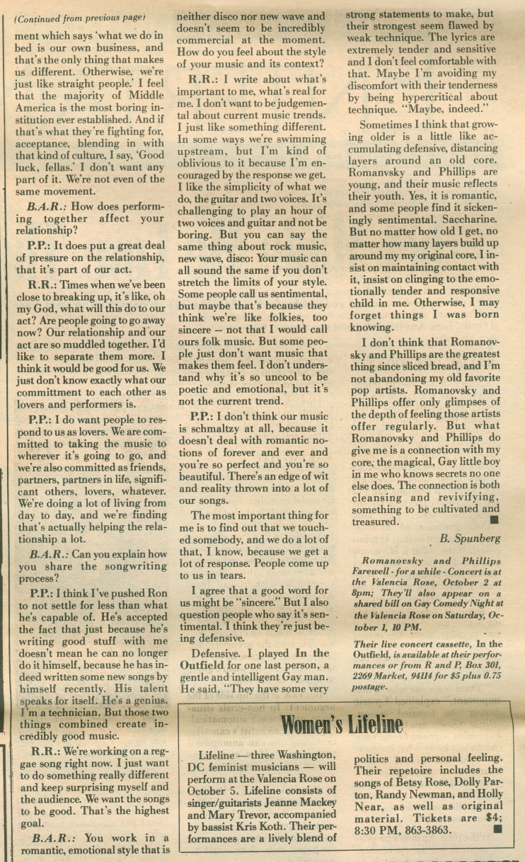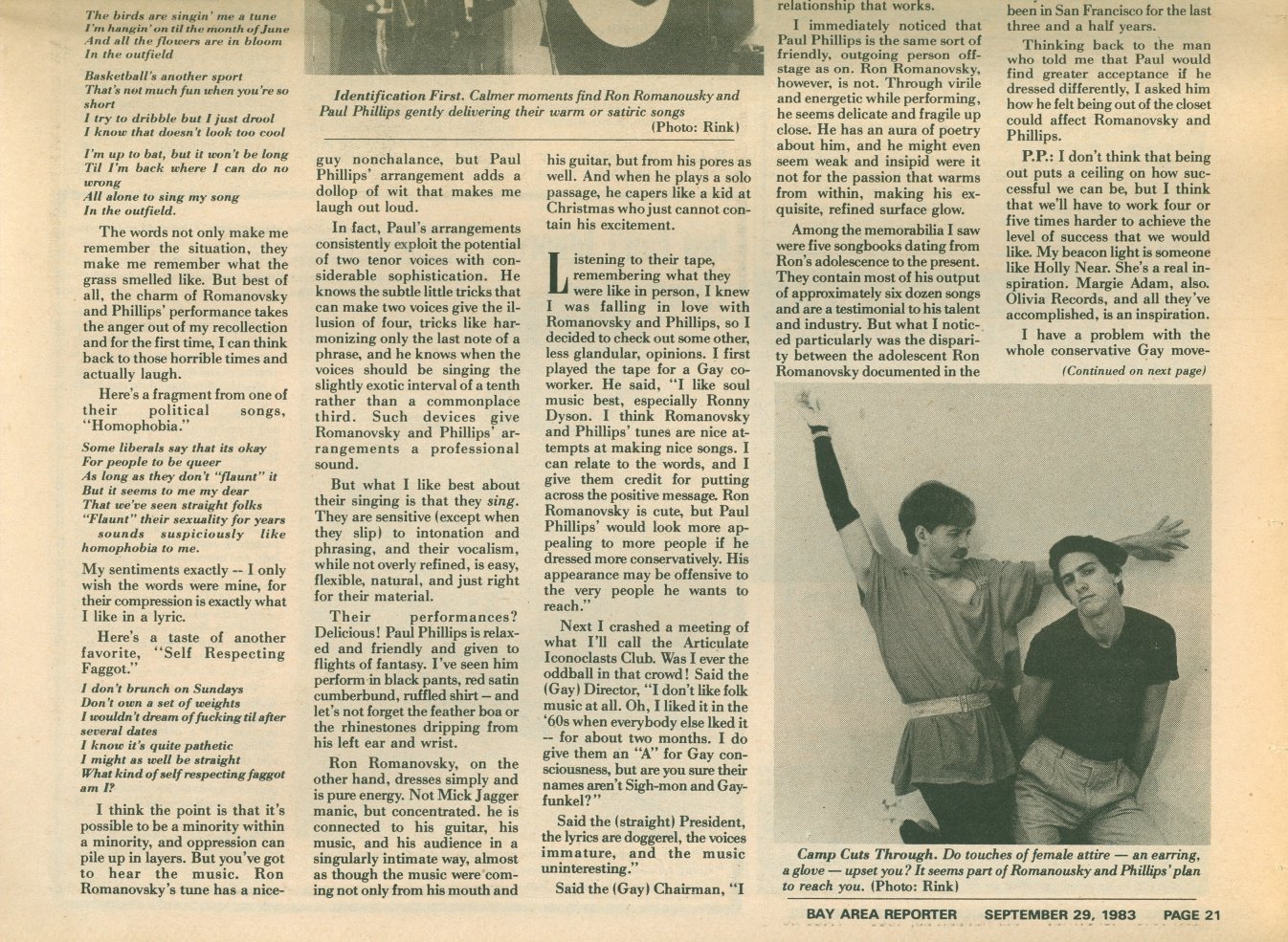 Another VERY early article on them, from the Bay Area Reporter, March 1983