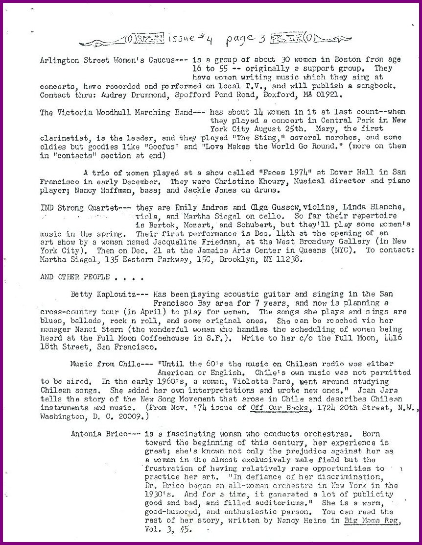 for the page above: Arlington Street Women's Caucus, Victoria Woodhull Marching Band, Betty Kaplowitz, Full Moon Coffeehouse