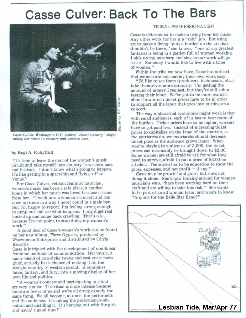 Music has downloads of Casse's albums... Above, large look at the album cover Below, close-up of historic photo Download larger scan of this photo Below, the lyrics Below, the very rare cassette tape on an early concert, from August 23, 1974, in L.A. (pass cursor over it to see back) Below, a real rarity I just acquired (Jan 2005), a tape of material from 1972, but not released until ten years later (pass cursor over the liner notes to see the reverse) below, early mention of Casse, in Musica, May 1974 Above, ad that appeared in Paid My Dues, Summer 1978 Below, article in Paid My Dues, October 1974 and below, a rare 45, especially with the cover, from 1983 |