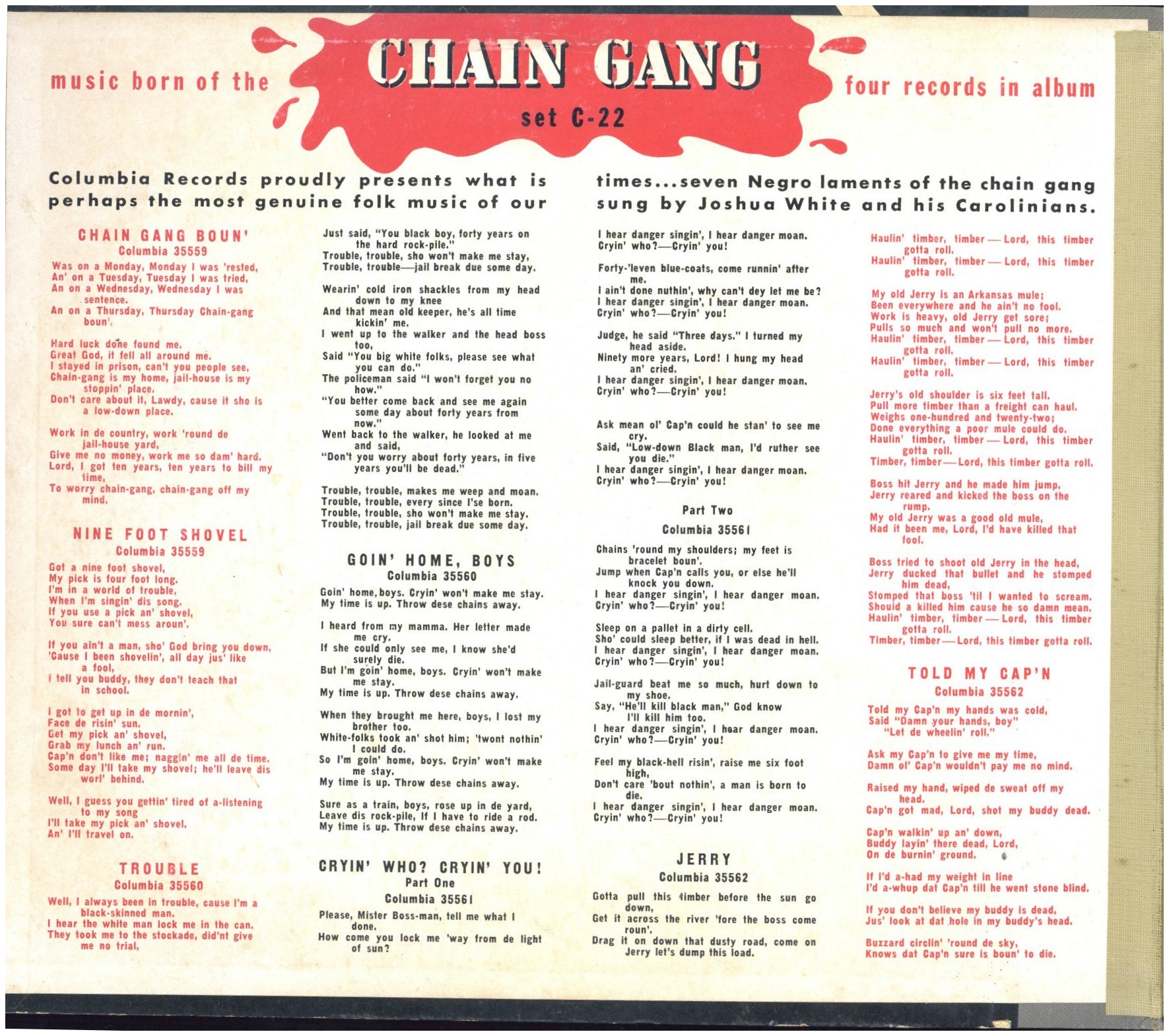 Wiki Josh White entry, White performed in 1939-40