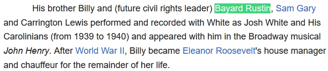 Blog Post on Rustin ************** Some Deeper Music History, with Josh White 1939-1940