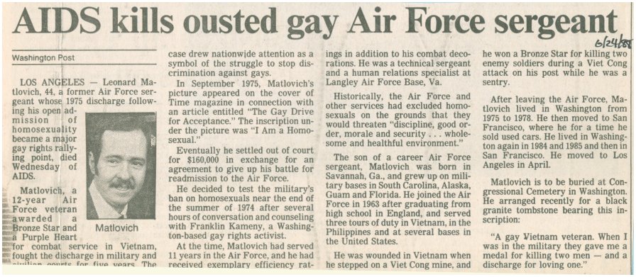 Leonard Matlovich... July 7, 1943 -- June 22, 1988 Leonard