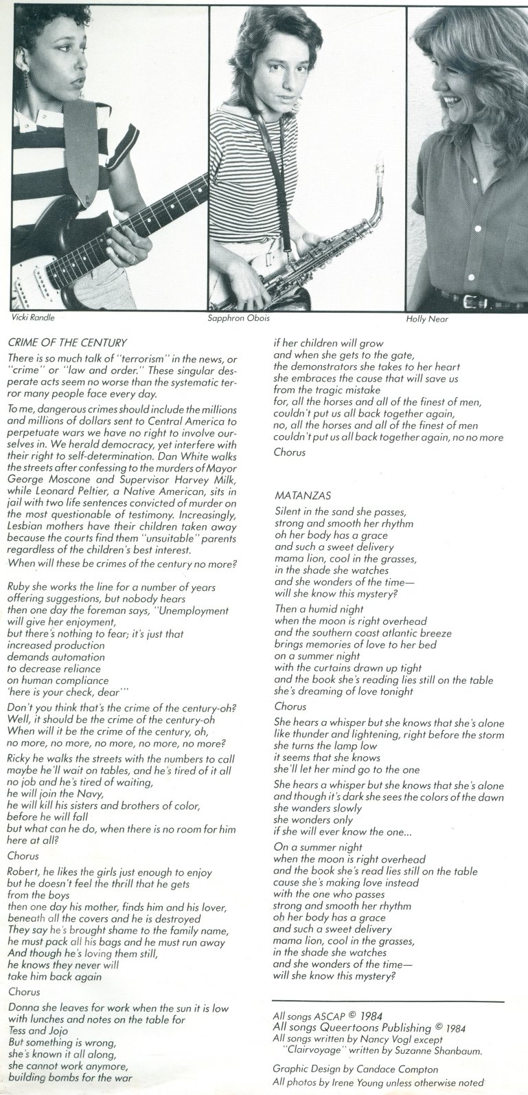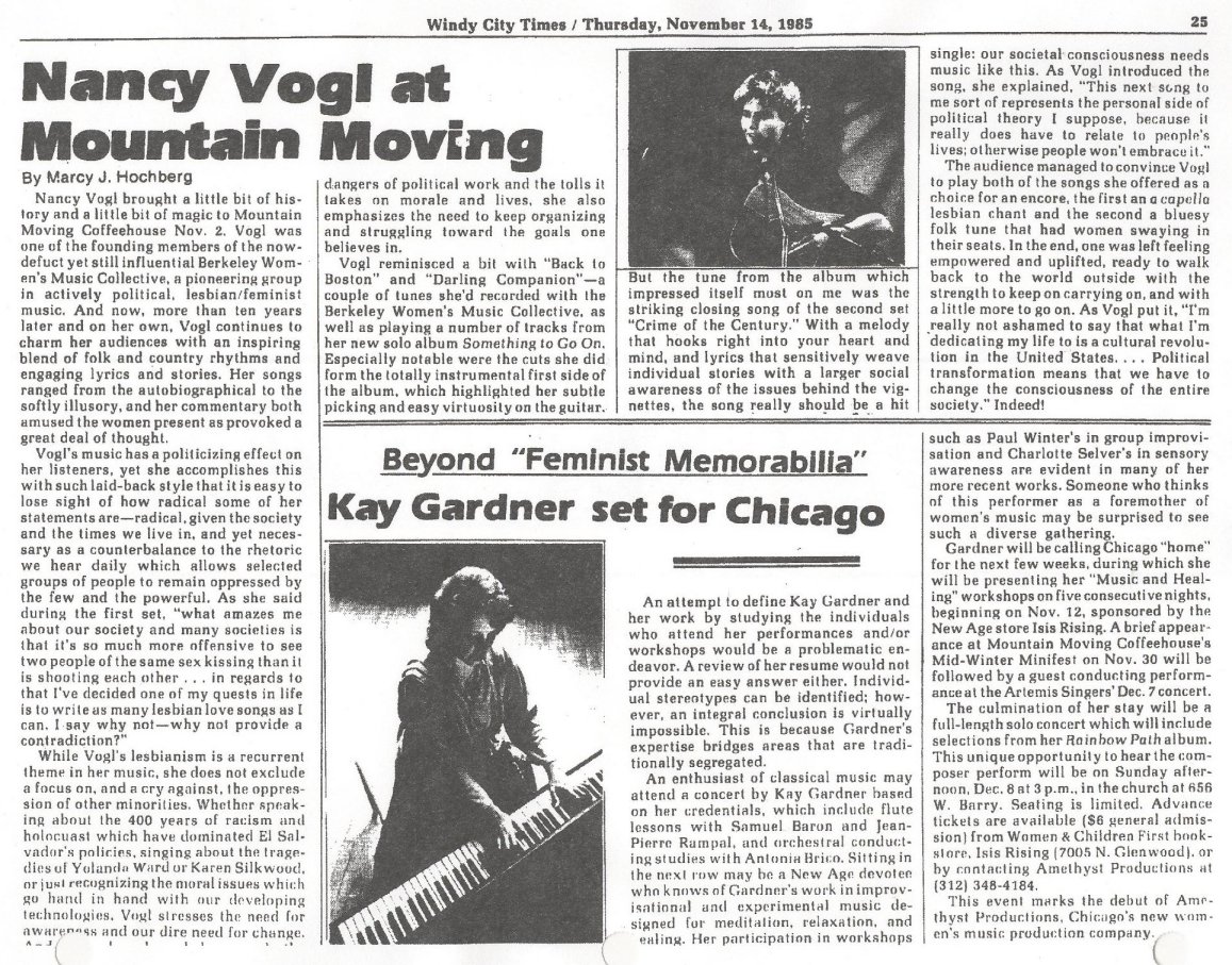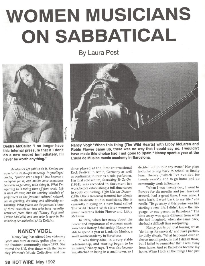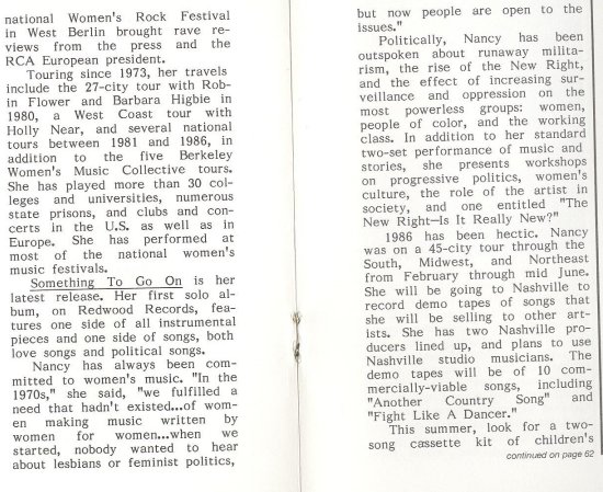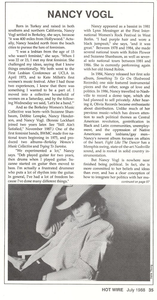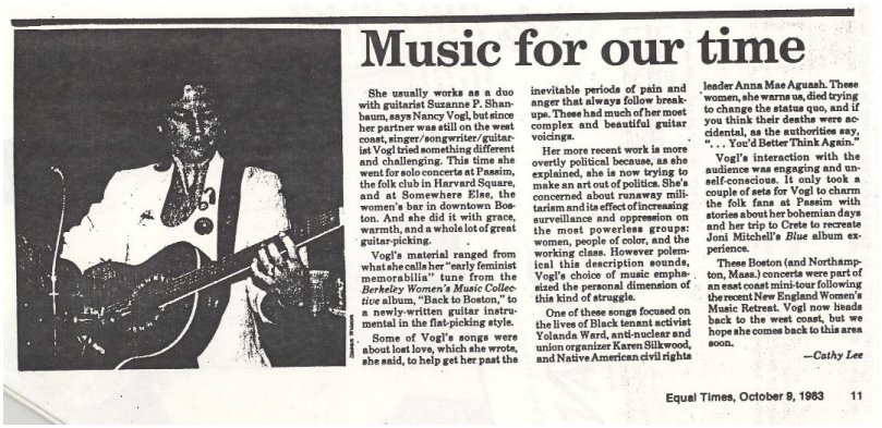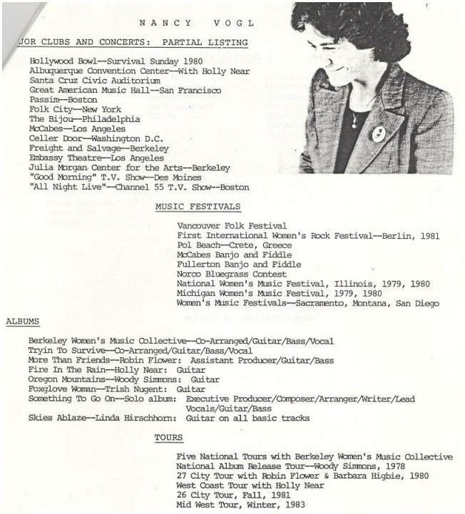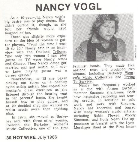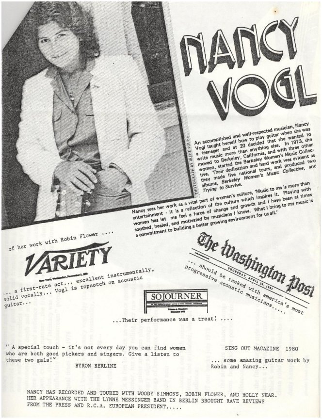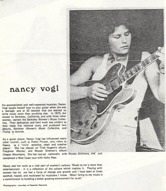 your Nancy Vogl on Olivia Records (also see Berkeley Women's Music Collective)
