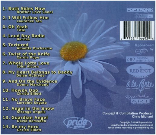 Just for kicks, the CD below may be of interest. It's a 1999 Toronto Pride release, and amazingly is Not full of dance tracks. Not all of the artists are Canadian, but a large percentage of them are. As I write this Amazon had some copies.