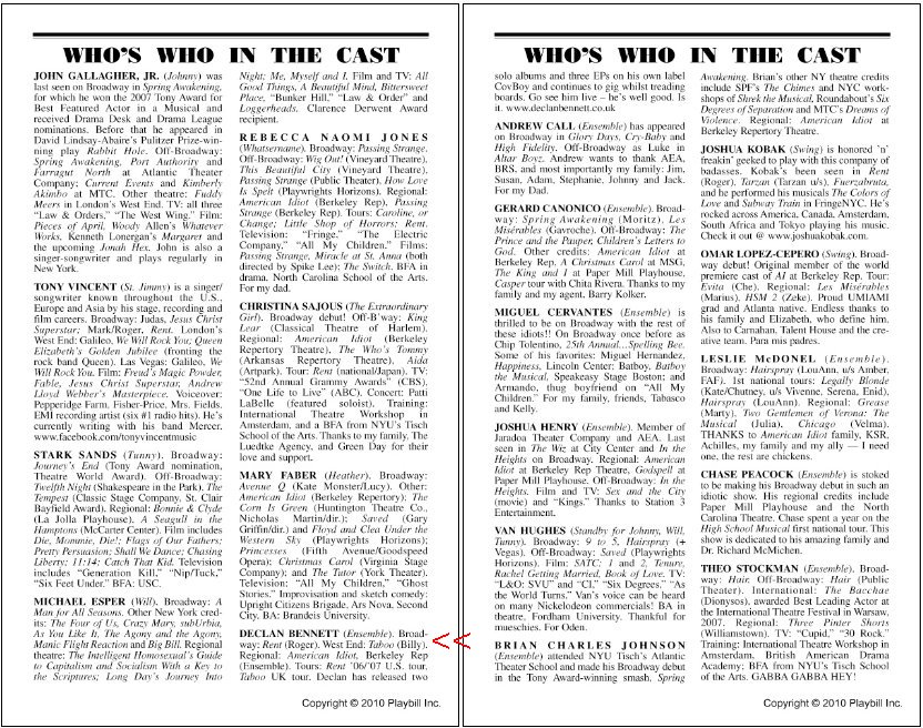 Declan Bennett "Rent" & "American Idiot" Program scans & "Record: Breakup" CD
