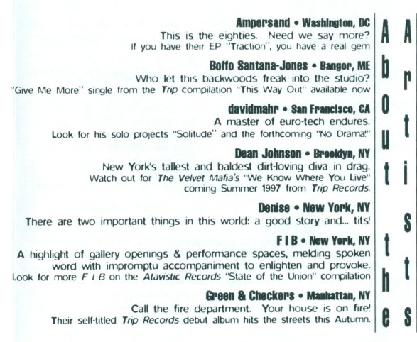 Trip Records gave roots to the Velvet Mafia recordings, and many