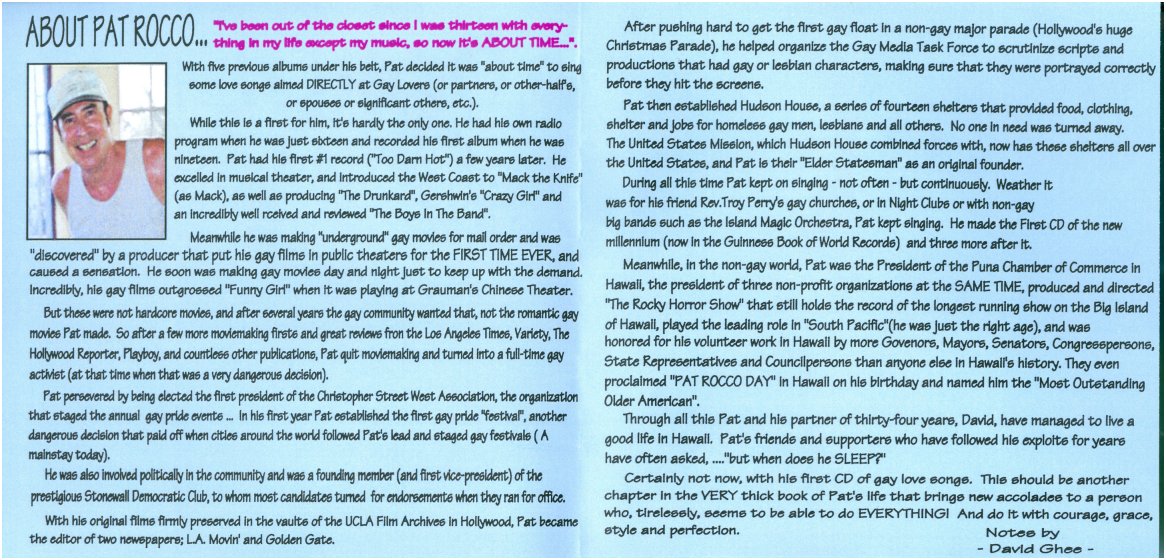Back to Pat Rocco Introduction Pat Rocco Recordings, Continued
