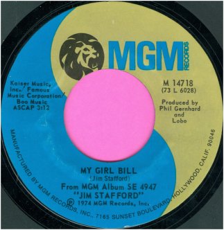 [airdate Sept 23, 2002] Below, Jim Stafford's novelty 45 "My Girl Bill," made it to #12 on Billboard charts
