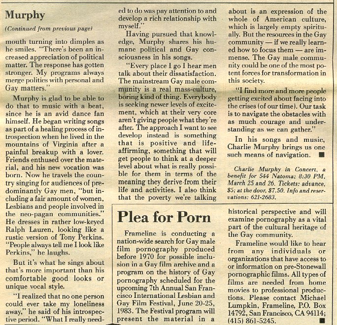 Above, 1983 article from Bay Area Reporter, with the album being released the next year