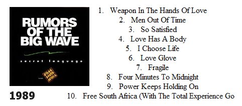 Below, 1985 12" EP Rumors of the Big Wave ***** below, the only release I'm missing (can you help me get a copy?): RUMORS OF THE BIG WAVE - SECRET LANGUAGE (1989)