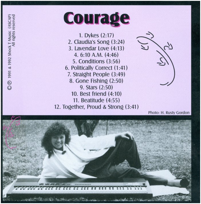 Howard - Something About Her (1989) And the Cowgirl Sweethearts gave us that song about bathroom confusion. "You Got Me All Wrong" was from their 1994 cassette called "The Cowgirl Collection." And here's a very rare song by one of the most beloved singers of the Women's Music Movement, Meg Christian. What makes it so very rare is that it was on the very first record released by Olivia Records, a 45 rpm one, and the song appeared on no album. Also unusual is that it was a cover song. So here's Meg singing the Carole King song "Lady."