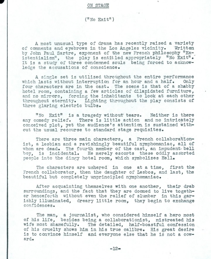 Play Review: "No Exit," by John Paul Sartre